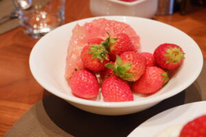 ディナータイムで同じレストランを使ったことはあるのですが、その時のデザートも料理も味が濃すぎて自分には合わず、敬遠していました。苺の時期なら大丈夫だろうと思いトライしてみましたよ!