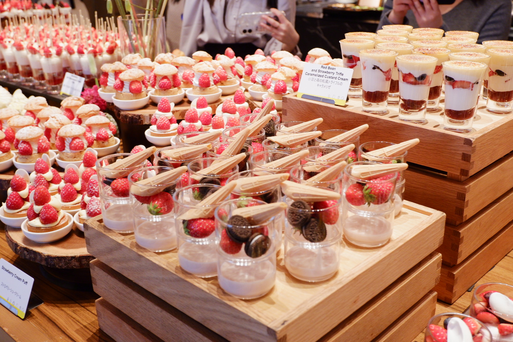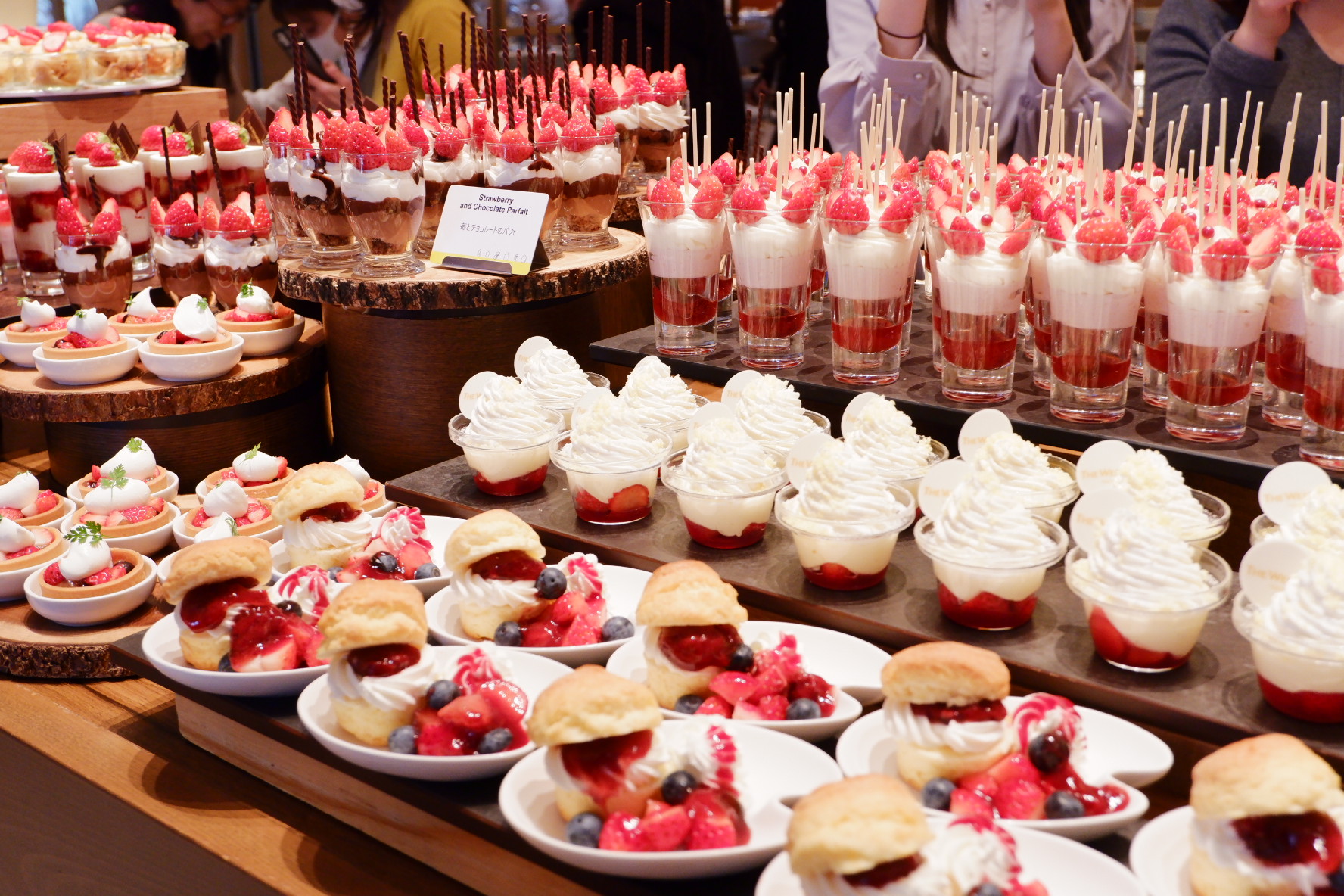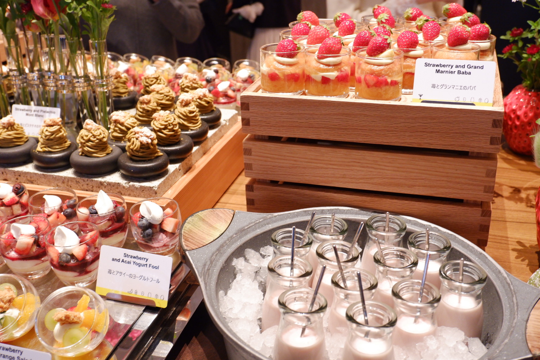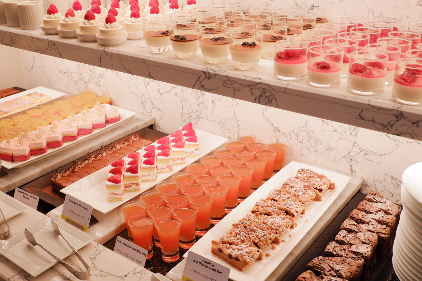 ビュッフェ台は圧巻でした。グラスや小皿に盛られていて見栄えのするものが多かったです。取りやすいのも良かったですね。フレッシュ苺コーナーがあり、3品種を食べ比べできました。これも嬉しかったです。
