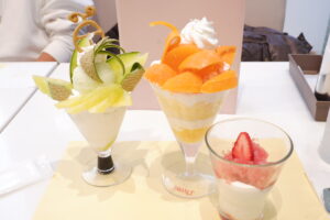 今月はホワイトデーイメージのパフェがあったり、高級みかんの「せとか」を使った鮮やかなオレンジ色のパフェが提供されました!